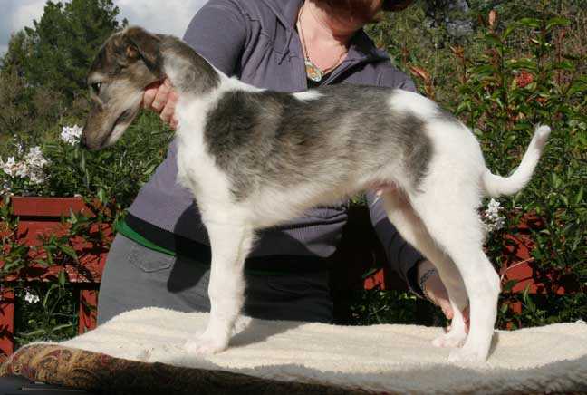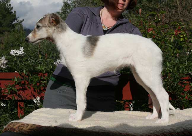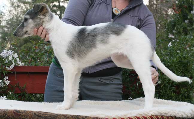 Thanks to Guin Borstel of Milescross Whippets for handling the dangerous job of puppy stacking for the kids 10 week pictures!